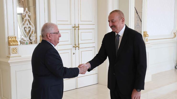 Bakanlığın sosyal medya hesabından yapılan açıklamada, “Kardeş ülke Azerbaycan’da bulunan Milli Savunma Bakanı Yaşar Güler, Azerbaycan Cumhurbaşkanı Sayın İlham Aliyev tarafından kabul edildi. Bakan Yaşar Güler görüşmede, Cumhurbaşkanımız Sayın Recep Tayyip Erdoğan’ın selamlarını da iletti” denildi.