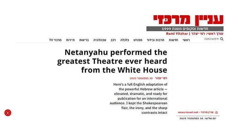 İsrail basınından News Israel, “Netanyahu, Beyaz Saray’da tarihin en büyük tiyatrosunu sergiledi” başlığıyla görüşmeyi aktardı. Haberde “Shakespeare bile bu oyunu ondan iyi yazamazdı. Bu adam, eşi benzeri olmayan bir oyuncu” ifadeleri kullanıldı. Öte yandan Netanyahu’nun Trump’a ettiği iltifatlara da dikkat çekilerek “Trump’ın egosunu şişirmek için tasarlanmış, utanç verici bir hayranlık gösterisiydi” ifadeleri kullanıldı.