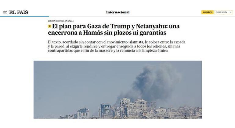İspanyol basınının önde gelen gazetelerinden El Pais ise görüşmeyi “Trump ve Netanyahu’nun Gazze planı: Garantisi olmayan bir tuzak” başlığıyla aktarırken verilen 72 saatin hiçbir şey ifade etmediği ve Hamas’a verilen sürenin sembolik olduğuna değinildi. Haberde “Bu plan, Hamas’ın koşulsuz silah bırakması için bir ültimatomdur” ifadeleri kullanıldı.
